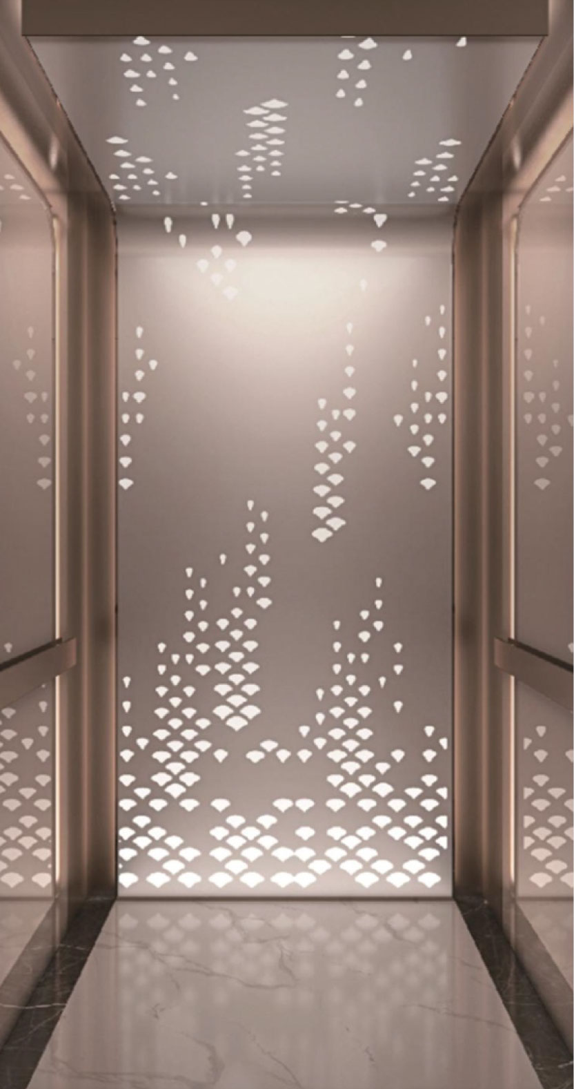 后壁│古铜发纹本色喷砂镂空不锈钢、乳白透光片