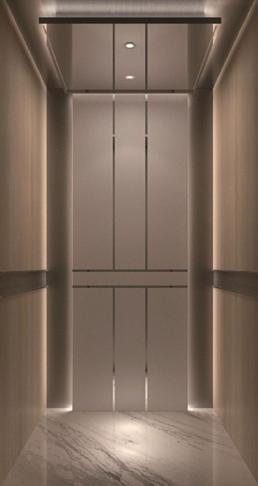 后壁 | 中间镜面喷砂不锈钢暗藏灯带辅助无指纹黑钛发纹不锈钢
